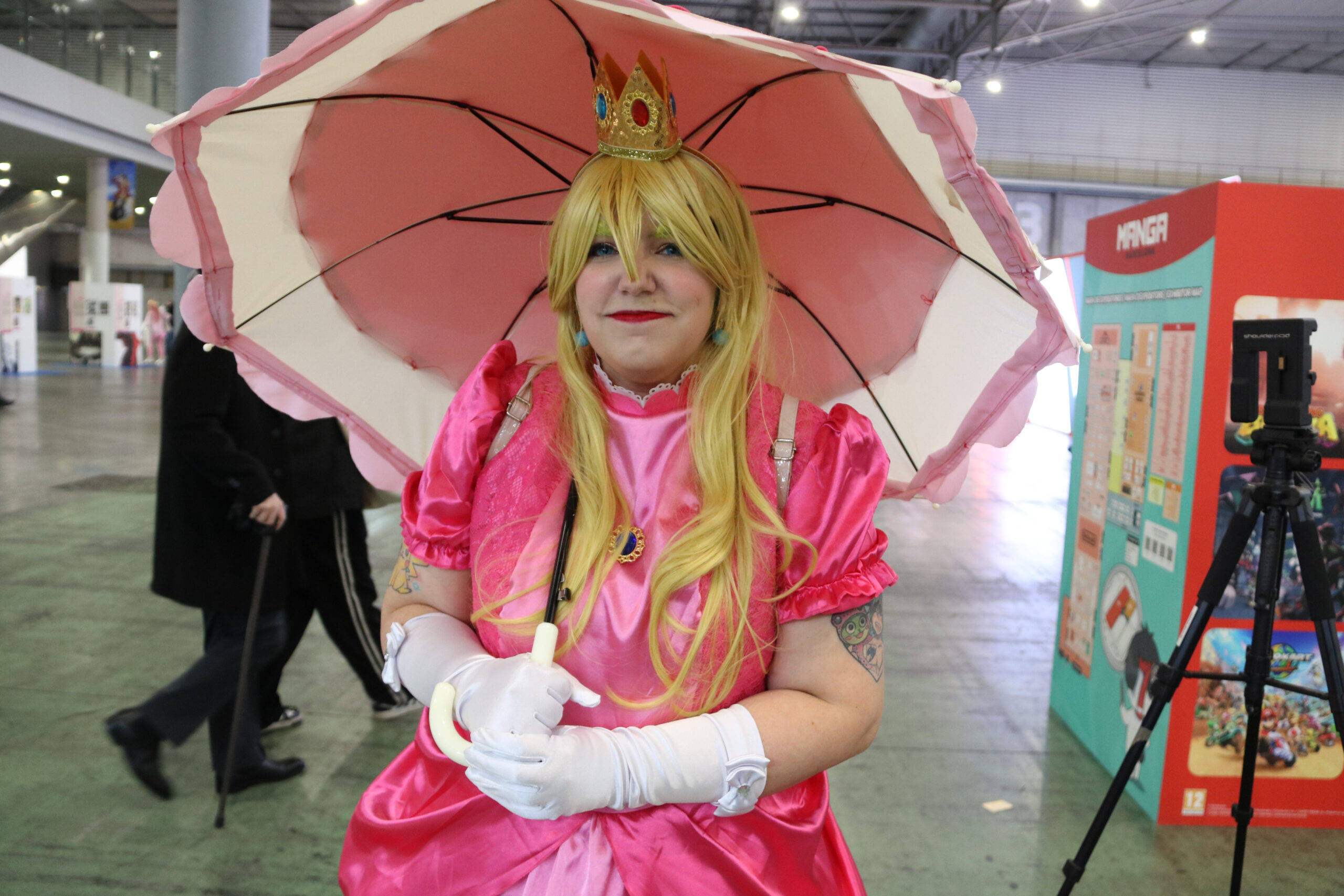 Milers de persones de totes les edats han anat entrant ordenadament al recinte des de primera hora del matí. Una de les primeres a fer-ho ha estat la Bea, una jove de Rubí que fa gairebé dues dècades que no es perd la cita. “Porto des dels 10 anys venint al saló i en tinc 29”, ha explicat a l’ACN. Com és tradició, la Bea s’ha vestit per a l’ocasió amb un cosplay de la Princess Peach, una de les seves favorites de l’univers Nintendo. En aquest sentit, ha confessat que s’ha gastat 120 euros per recrear el personatge. “La disfressa parteix d’un vestit comprat, però l’he anat guarnint per assemblar-me al màxim a l’original”, ha expressat.