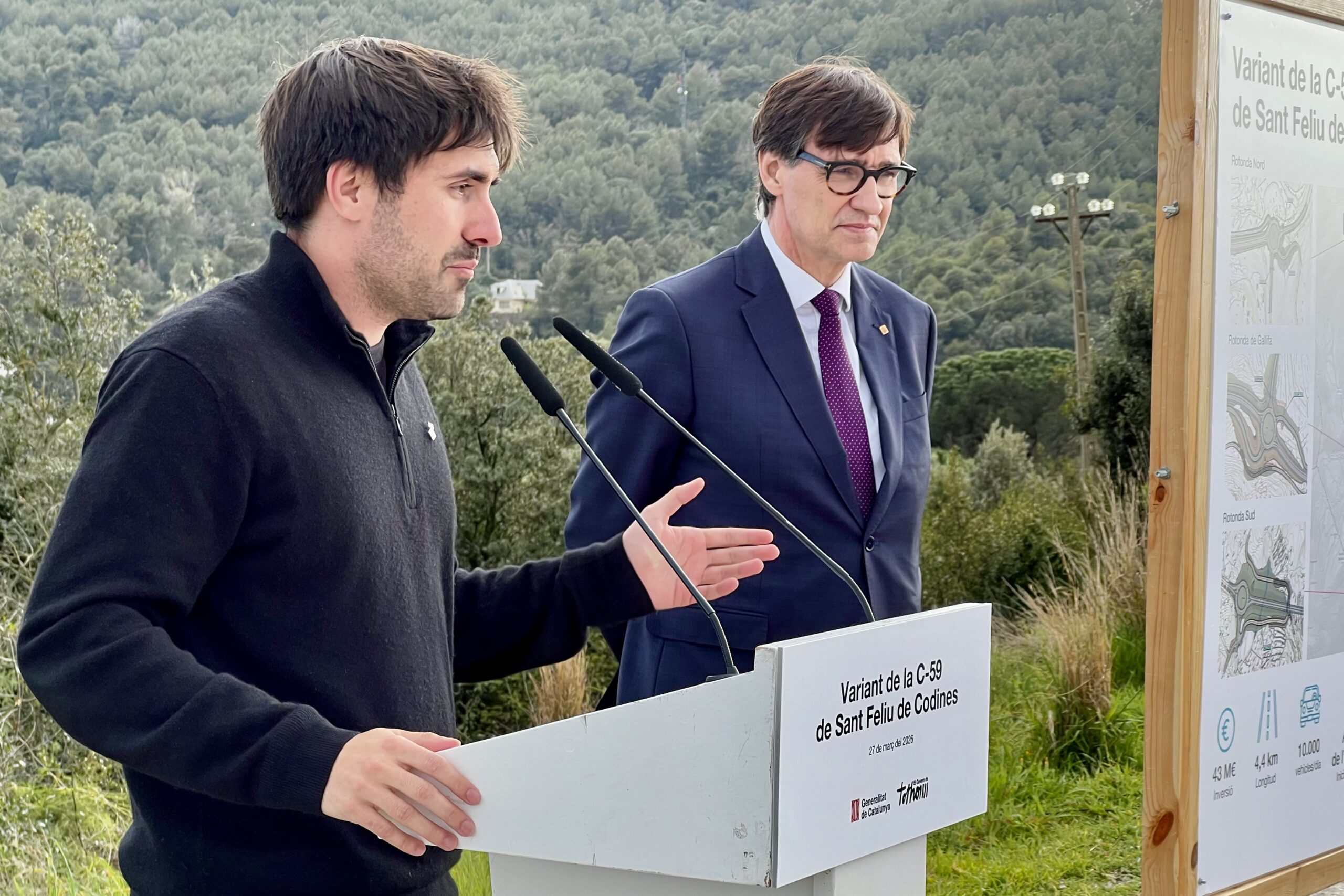 ACN Sant Feliu de Codines – El president de la Generalitat, Salvador Illa, ha destacat que la variant de la C-59 permetrà evitar que 10.000 vehicles passin cada dia per Sant Feliu de Codines (Vallès Oriental). Illa ha visitat aquest divendres l’espai on es duran a terme les obres, que començaran a l’estiu i s’allargaran uns 30 mesos. “És la connexió entre el Vallès Oriental i el Moianès”, ha destacat, tot posant sobre la taula la necessitat que els treballs es facin des de la sensibilitat i que s’escolti el territori. L’alcalde, Pol Cabutí, ha qualificat el dia d'”històric”, i ha apuntat que amb 43 milions d’euros aquesta és “la inversió de diners més important que es farà dins del terme municipal de Sant Feliu de Codines”.