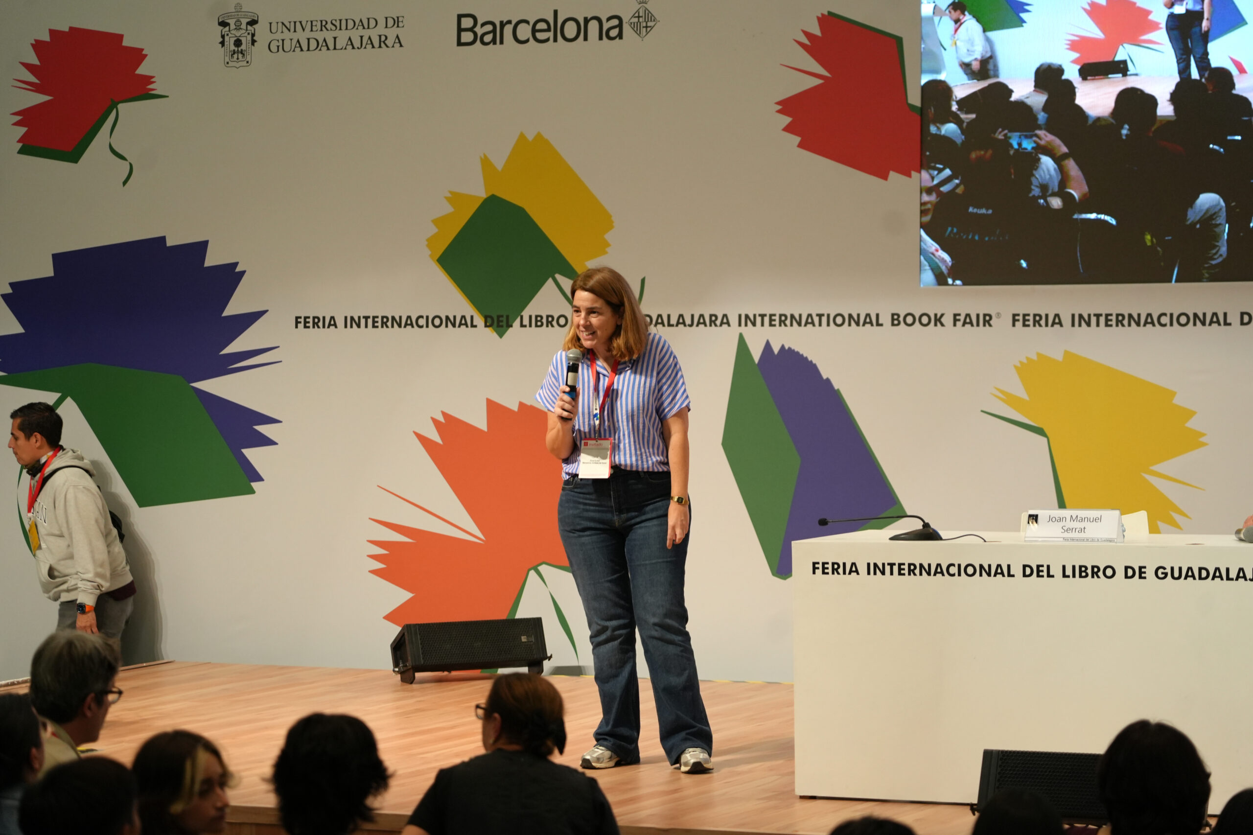 Serrat s’ha convertit un dia més en el protagonista de la FIL, que avui tenia programat un acte molt esperat: una conversa amb joves, acompanyat del seu amic Benito Taibo, la família del qual va acollir al cantautor quan va es va exiliar a Mèxic. Un dia més, la visita de Serrat ha fet embogir el públic de la fira, que ha omplert ràpidament l’auditori Juan Rulfo on feia la xerrada, deixant desenes de persones a les portes.