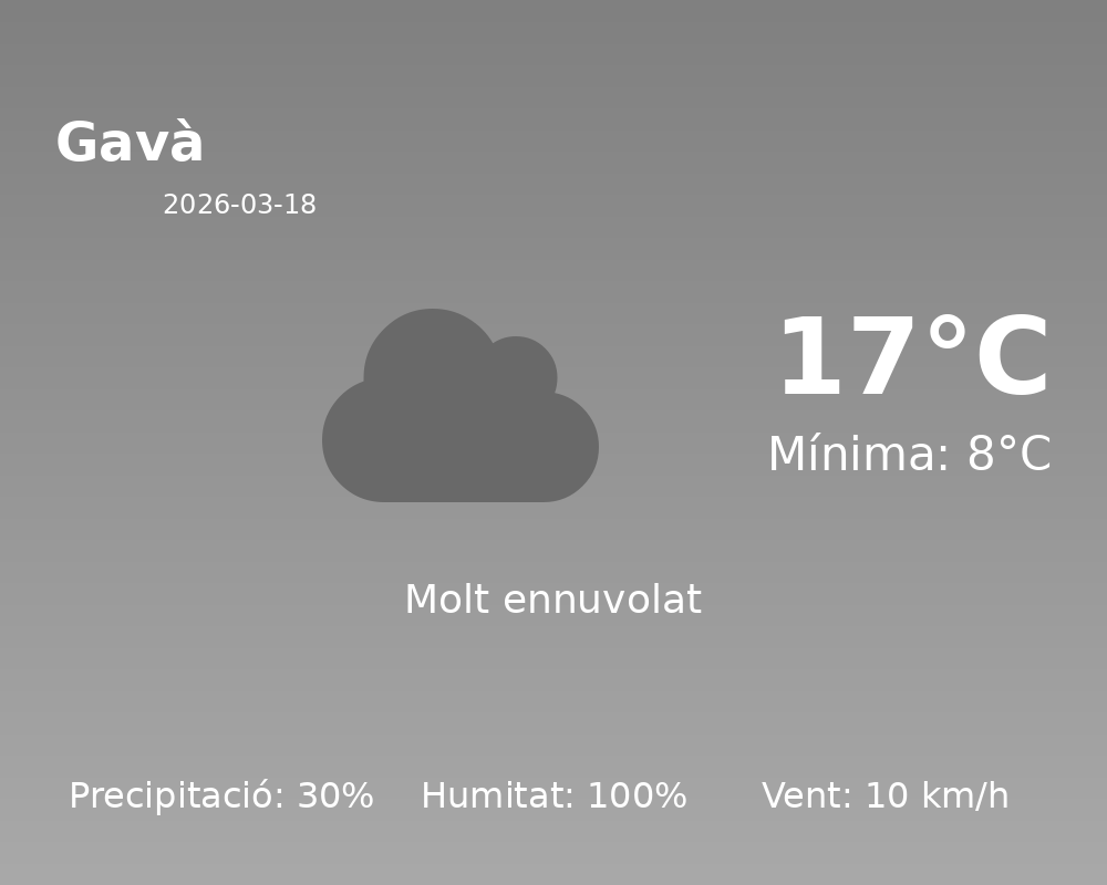 Benvolguts lectors, avui us portem la previsió meteorològica per a la jornada d’avui a la ciutat de Gavà. Segons les dades actuals, ens espera un dia amb condicions variables, de les quals us oferim tots els detalls a continuació.
