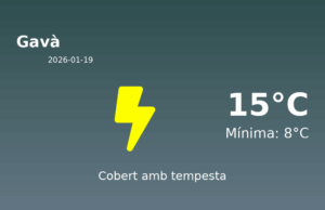 Avui, 19 de gener de 2026, Gavà experimentarà unes condicions meteorològiques bastant variables, amb temperatures que oscil·laran entre els 8°C de mínima i els 15°C de màxima.